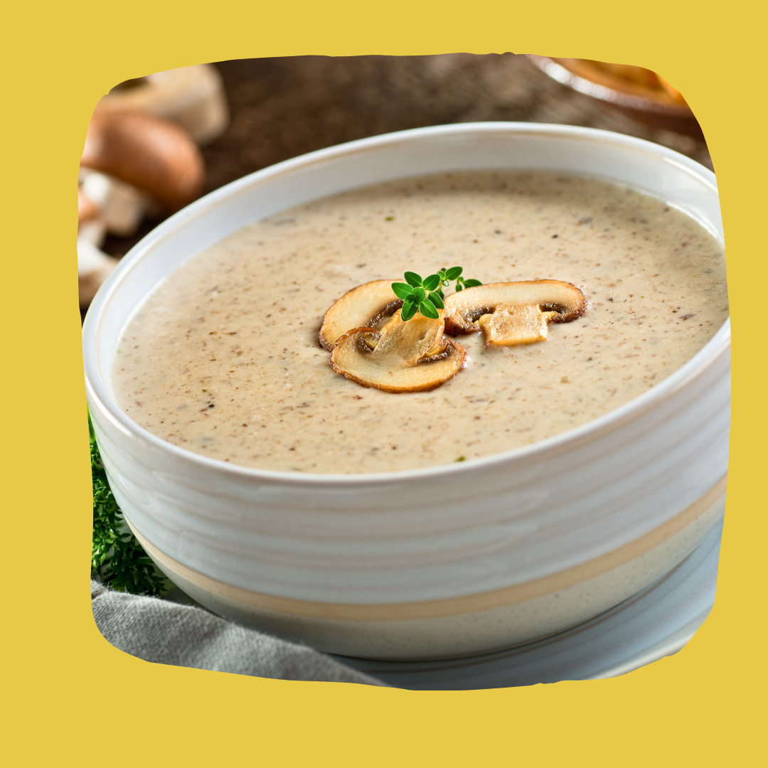 Creme preparado com uma seleção de cogumelos frescos salteados lentamente, que liberam seus aromas terrosos e sabor marcante.