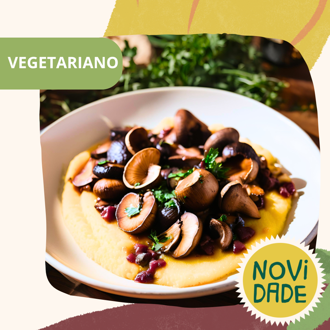 Estufadinho de cogumelos com legumes ao molho de vinho tinto com puré de batata.